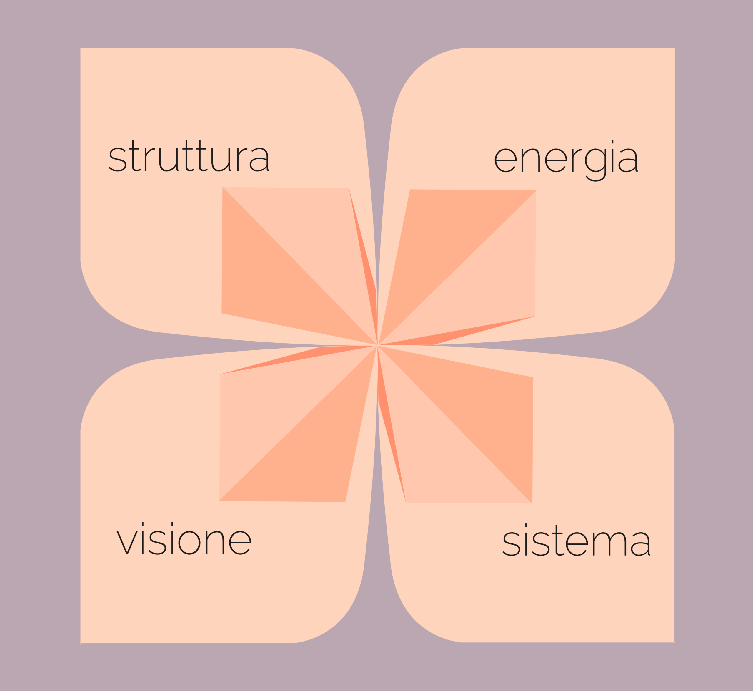 Queste componenti, al pari di Corpo-Cuore-Mente-Spirito in un approccio olistico al benessere, non sono entità separate, ma elementi interdipendenti: ogni parte concorre a definire l’armonia complessiva dell’Architettura dell’Identità, l’insieme vivo e dinamico che dà forma al progetto di brand/prodotto/servizio.